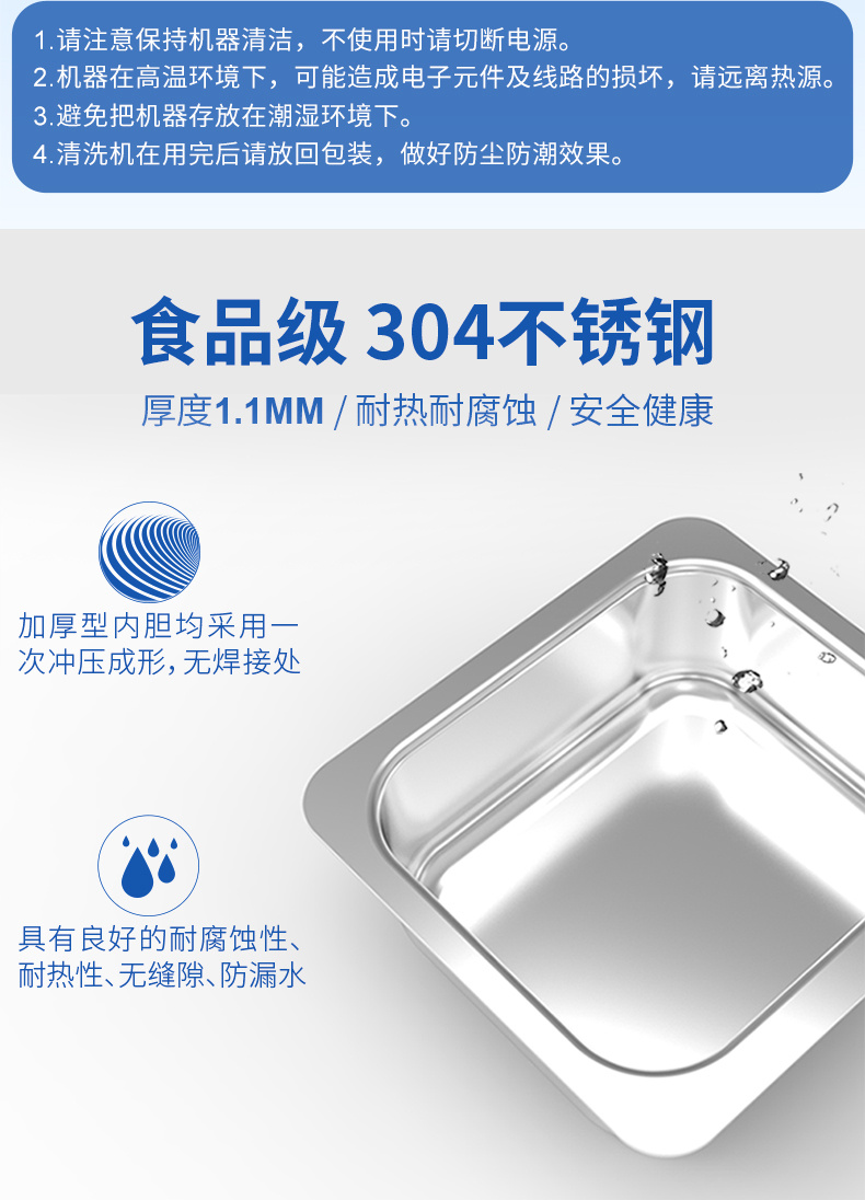 1.家用適用范圍:清潔高檔手表、品牌眼鏡、珠寶首飾等貴重物品和表鏈、水筆、光碟、刮須刀、梳子、牙刷、假牙、 茶具還有奶瓶、 奶嘴具等各類日用品,以及清洗水果、蔬菜、魚肉、碗碟筷等。