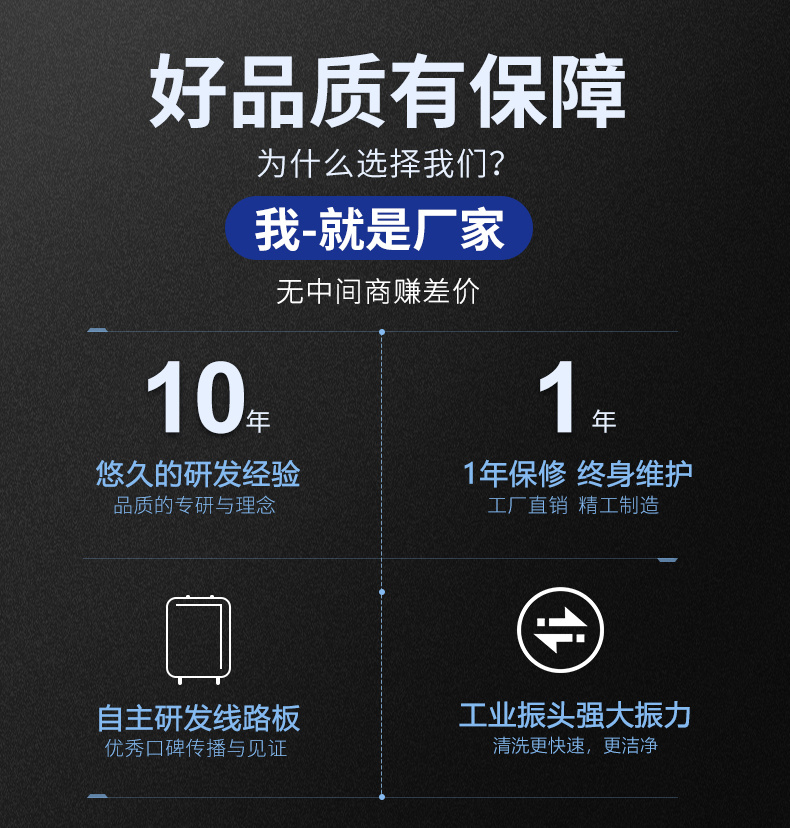 - 升級(jí)換能器:采用工業(yè)震頭,力度強(qiáng)勁,性能穩(wěn)定;