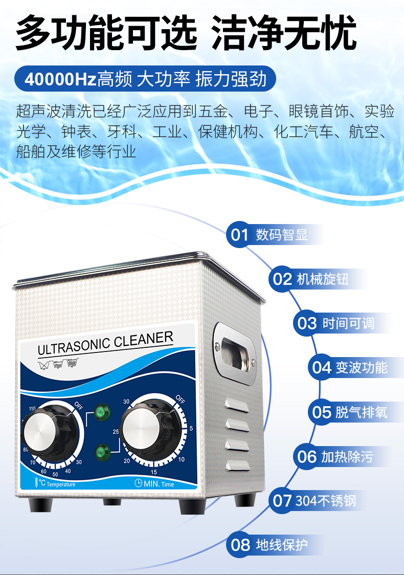 1.家用適用范圍:清潔高檔手表、品牌眼鏡、珠寶首飾等貴重物品和表鏈、水筆、光碟、刮須刀、梳子、牙刷、假牙、 茶具還有奶瓶、 奶嘴具等各類日用品,以及清洗水果、蔬菜、魚肉、碗碟筷等。