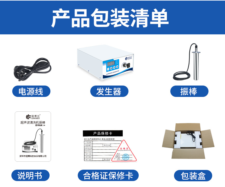 震棒、發(fā)生器、發(fā)生器電源、說(shuō)明書(shū)、合格證保修卡、內(nèi)置珍珠泡沫。