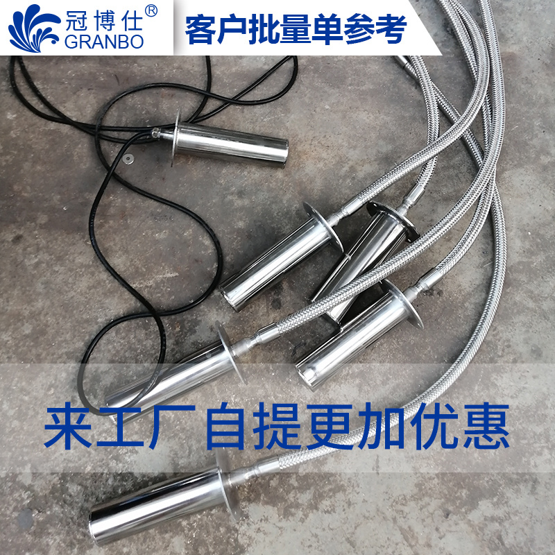 2.將振棒投入容器中,法蘭以下全部浸入液體中