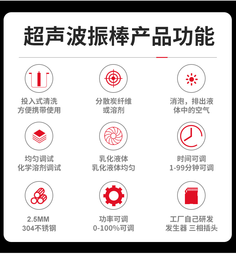實(shí)驗(yàn)室高校研究所應(yīng)用:碳纖維分散擴(kuò)散,化學(xué)溶液的攪拌、均勻、加速反應(yīng),細(xì)胞粉碎,產(chǎn)品粉碎,物質(zhì)分散(懸浮液制備)和凝聚;